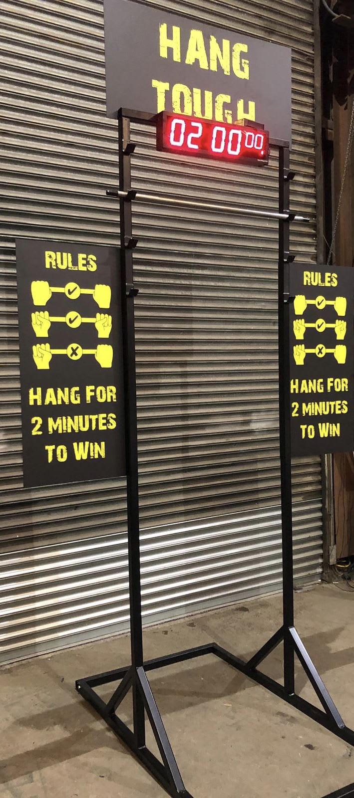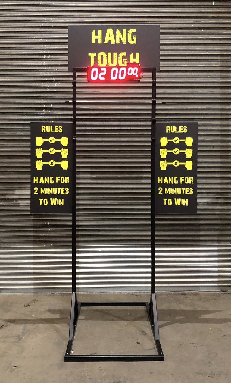 Introducing the Hang Tough Challenge, a game designed to test your strength and determination. This portable and easy-to-set-up game is perfect for any event or gathering. Whether you're hosting a corporate team-building activity or a backyard party, the Hang Tough Challenge is sure to be a hit.