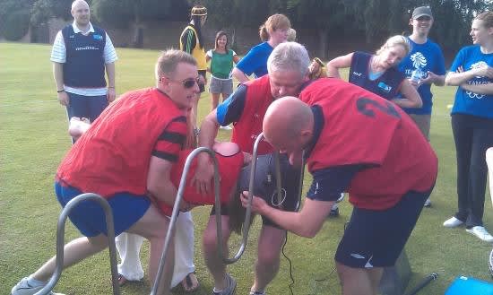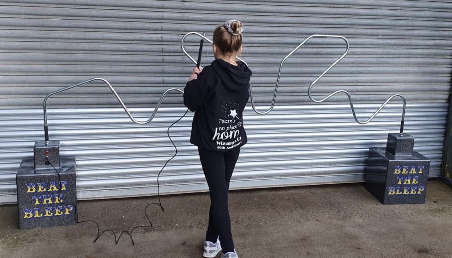 Want to take the excitement to the next level? We also offer a human attachment for Mega Beat The Bleep. This attachment comes in the form of a helmet with a metal hoop fitted to the top, creating the human buzz wire. Gather your friends, family, or colleagues and work together as a team to navigate the wire without setting off the buzzer.