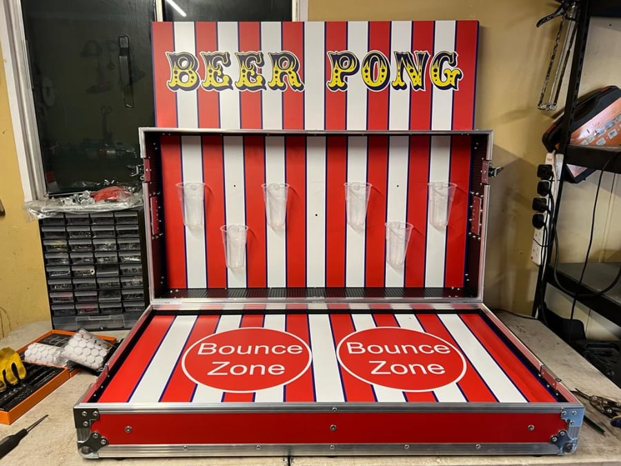 Our Beer Pong sets are designed for convenience and portability. Each set comes in a compact flight case, making it easy to transport and set up wherever you go. Whether you're hosting a backyard BBQ, a tailgate party, or a carnival event, our Beer Pong sets are the ideal choice.