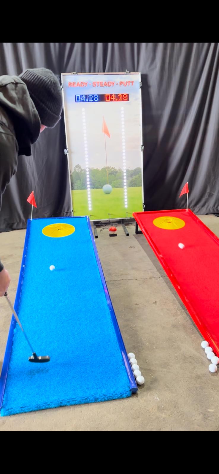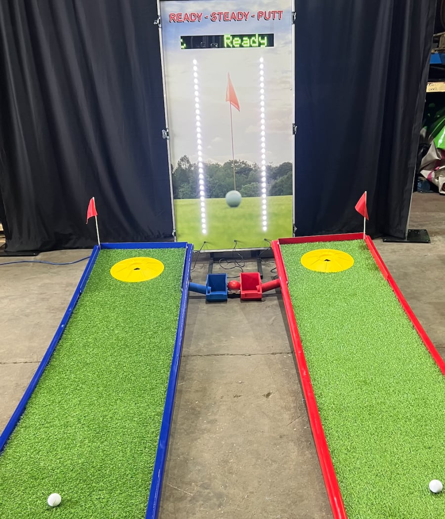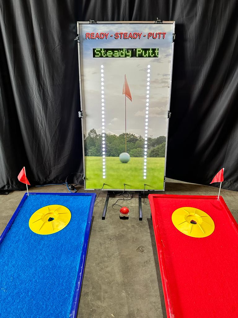 Transform your event into a golfing paradise with the Ready Steady Putt Golf Simulator from RS Sales. This two-player game is perfect for golf enthusiasts looking to hone their putting skills or just for a fun compertition.