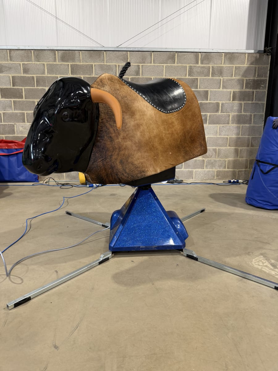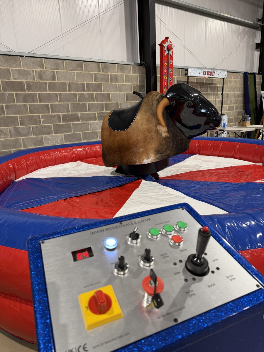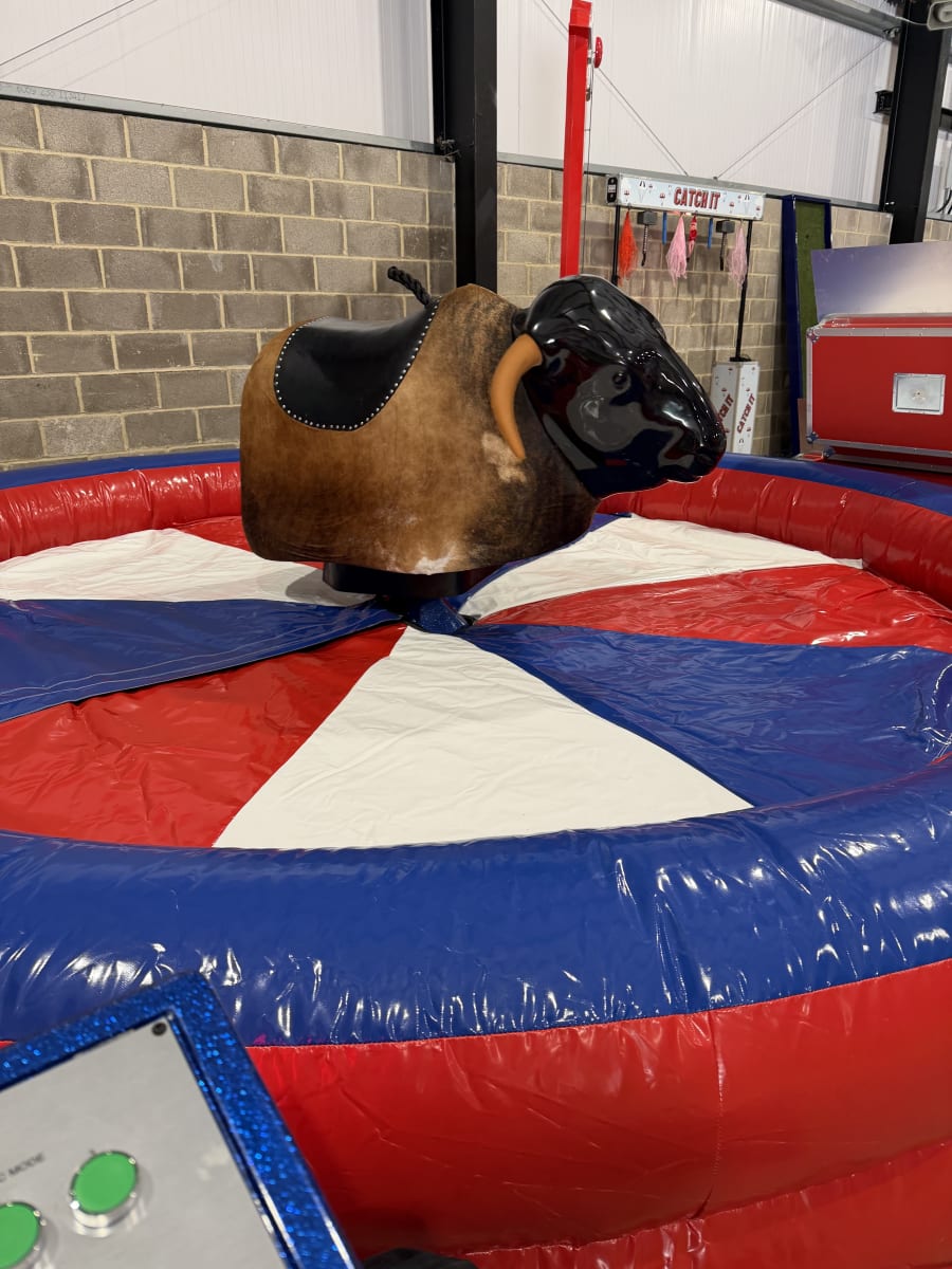 Our mechanical bull, also known as a bucking bronco or multi ride, is designed with both fun and safety in mind. Manufactured right here in the UK, it features a real hide bull available with or without horns, providing a realistic and authentic rodeo experience. The system includes a spacious 15ft (4.5m) air bed, ensuring soft landings and maintaining rider safety at all times.