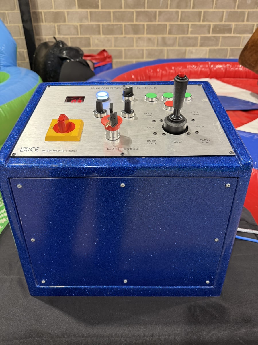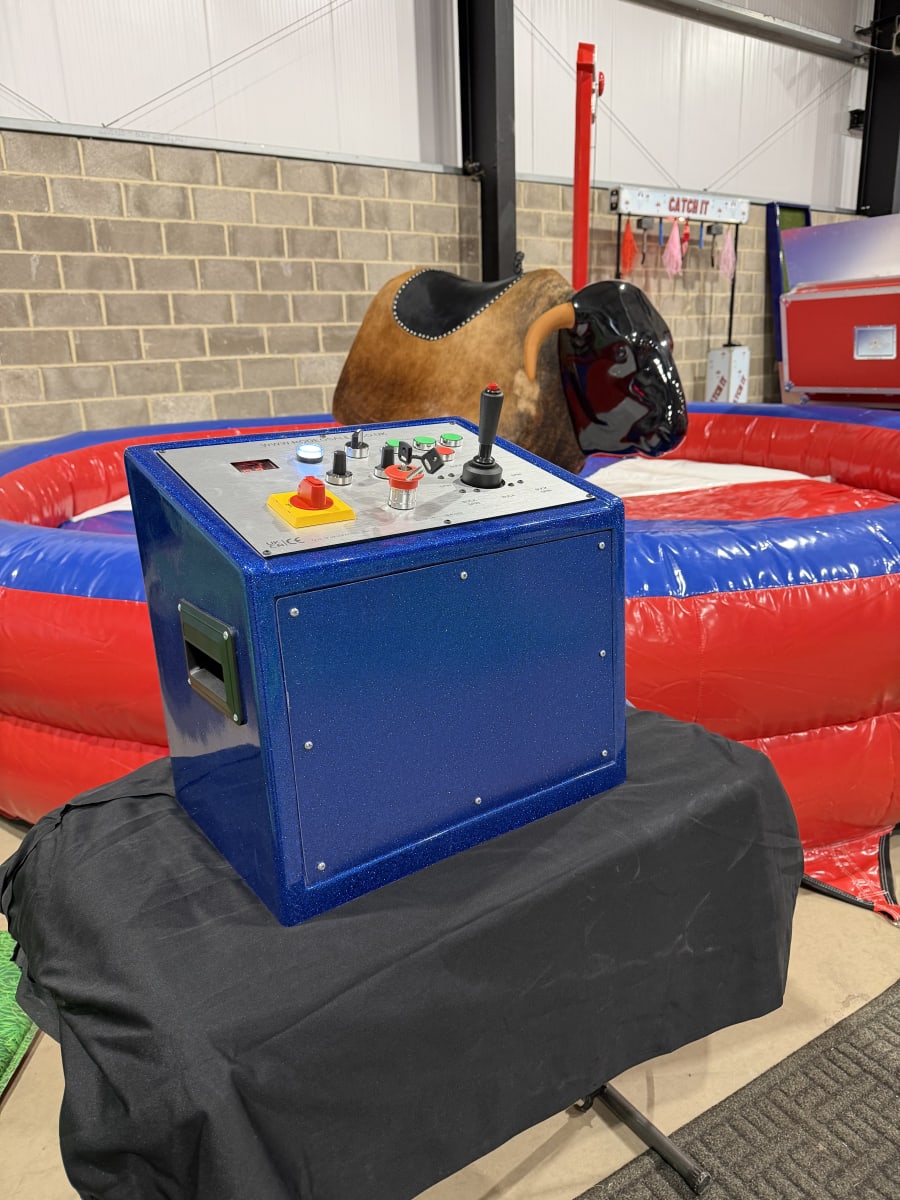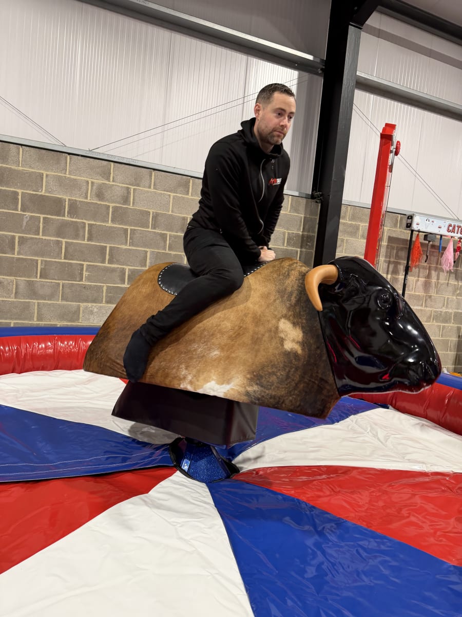 Our mechanical bull, also known as a bucking bronco or multi ride, is designed with both fun and safety in mind. Manufactured right here in the UK, it features a real hide bull available with or without horns, providing a realistic and authentic rodeo experience. The system includes a spacious 15ft (4.5m) air bed, ensuring soft landings and maintaining rider safety at all times.