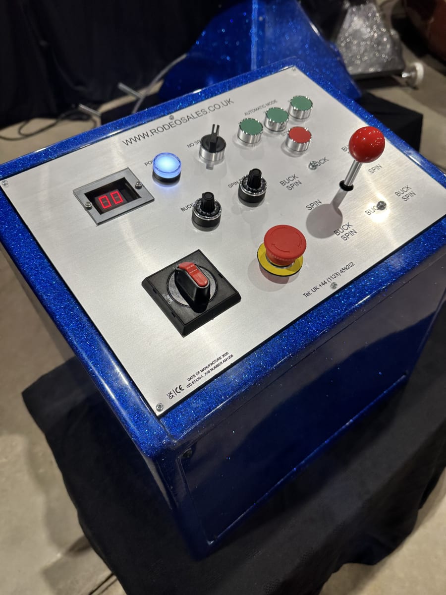 Dive into the exhilarating world of rodeo entertainment with the 123 GS by Rodeo Sales. This innovative system is expertly crafted to deliver a thrilling experience, reminiscent of the classic analog setups that have entertained many. With its straightforward control system - 1, 2, 3 - combined with dual timers, this product guarantees precision and excitement in every ride.