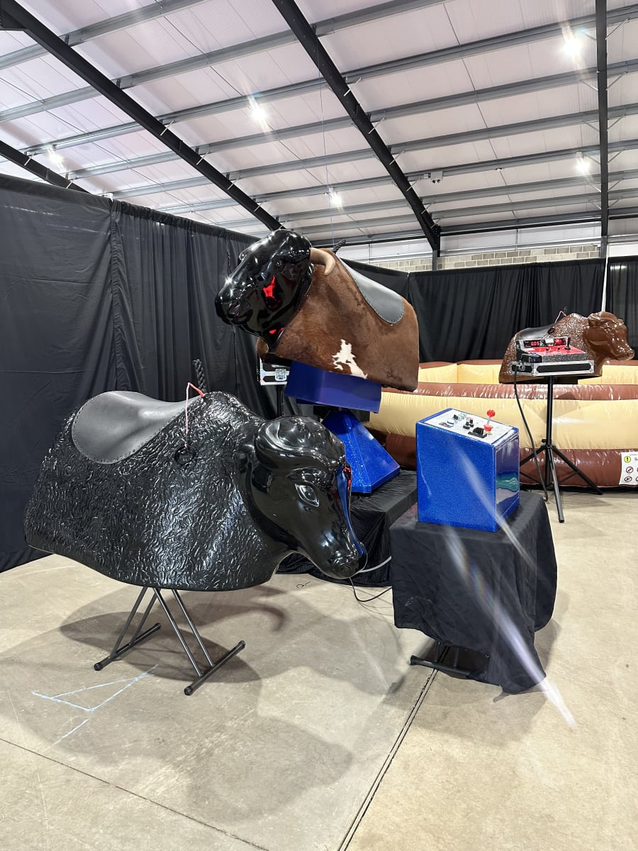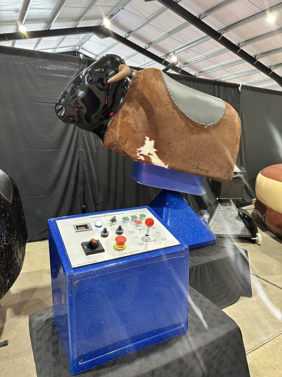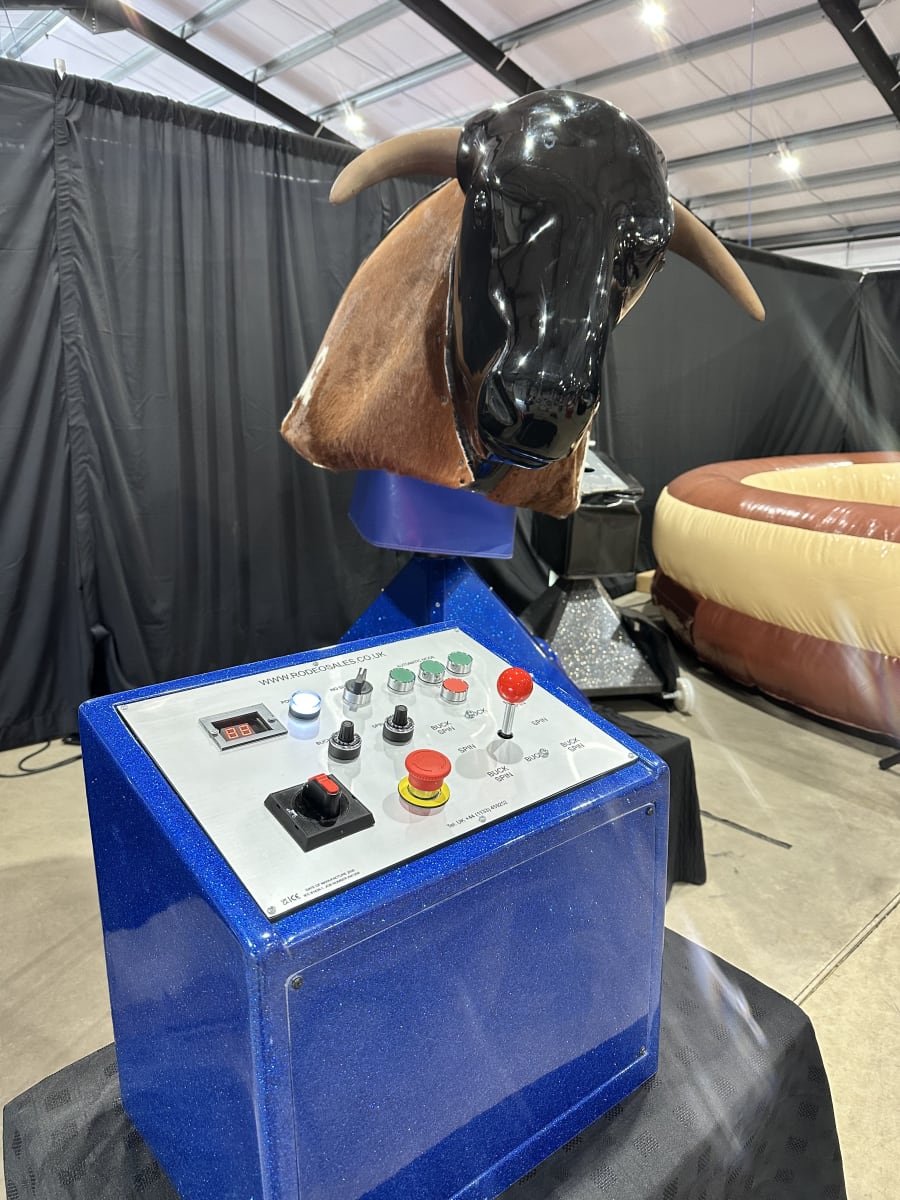 Our mechanical bull, also known as a bucking bronco or multi ride, is designed with both fun and safety in mind. Manufactured right here in the UK, it features a real hide bull available with or without horns, providing a realistic and authentic rodeo experience. The system includes a spacious 15ft (4.5m) air bed, ensuring soft landings and maintaining rider safety at all times.