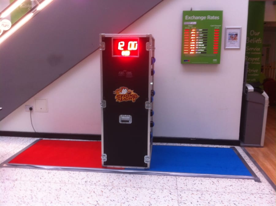 This the upright big brother of the Strike A light game still the same game but with the Up-Light more movement required and the competitors can not see the score till the end. There is still a large screen with the score on so all spectators can see who is winning. This is a bespoke item so can be built to whatever size configuration required.